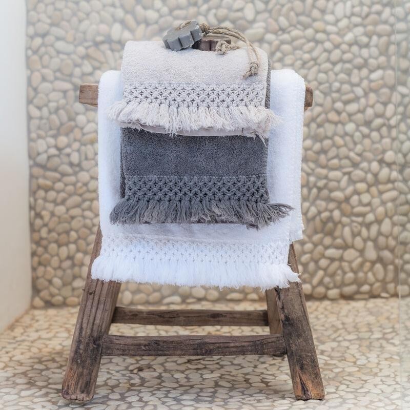 100% katoenen gastendoekje van het mooie merk Passion for linen. Een rand is afgewerkt met een gehaakte strook die een subtiele bohemian touch toevoegd.