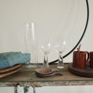 Deze mondgeblazen karaf is gemaakt van gerecycled glas. Handmade dus uniek en er kunnen imperfecties in zitten.