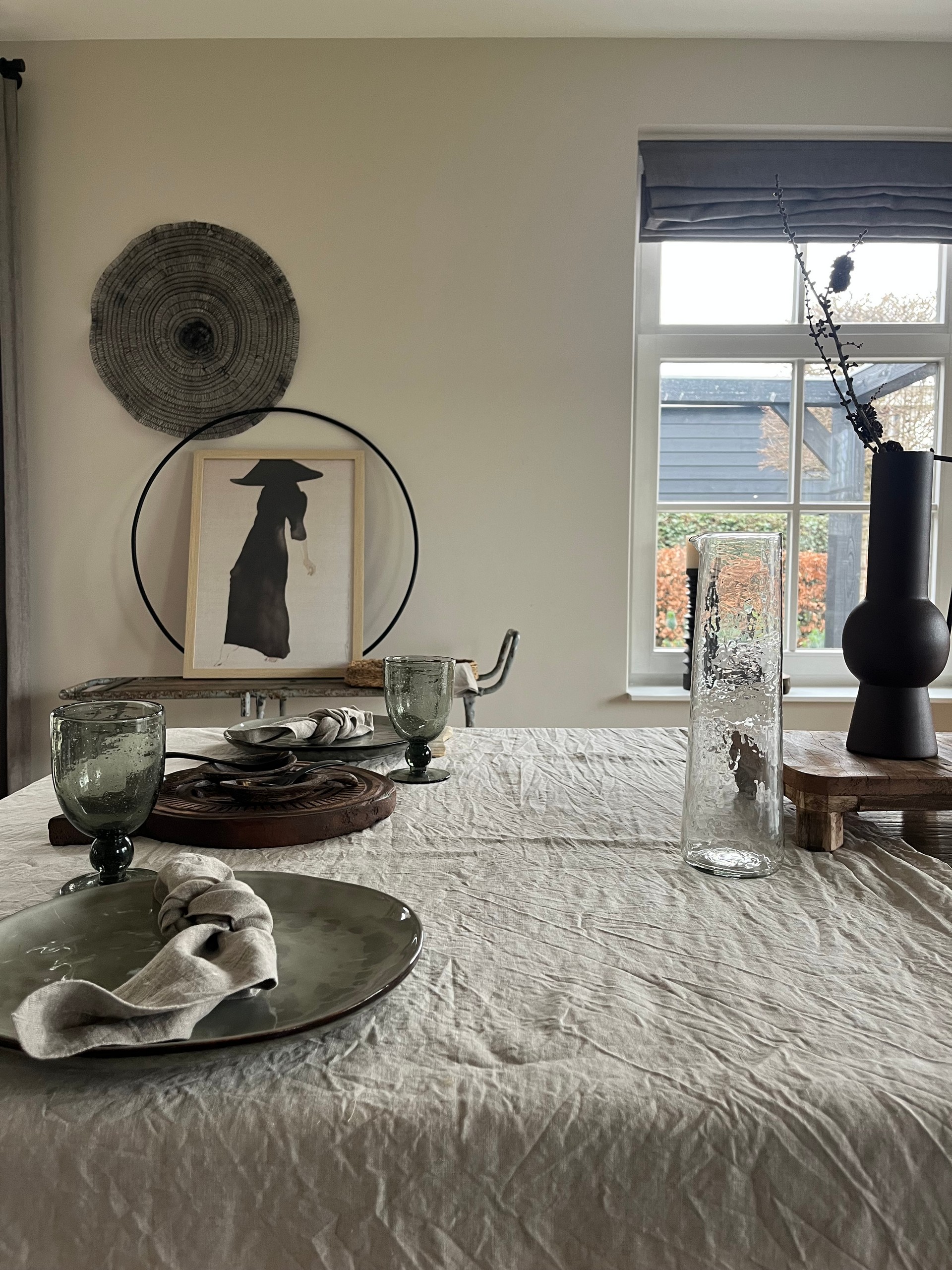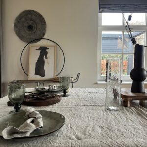 H 30, dia 28,5 en iets smaller lopend naar boven. Met schenktuit. Een plaatje op elke tafel!