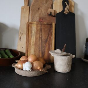 dia 20 cm, H 3,5 cm. Geschikt voor allerlei decoratieve mogelijkheden, leuk met liggende voorjaarsbolletjes erin, of een mooie plek om je sieraden in te leggen. Of wat dacht je van een mooie kaars.