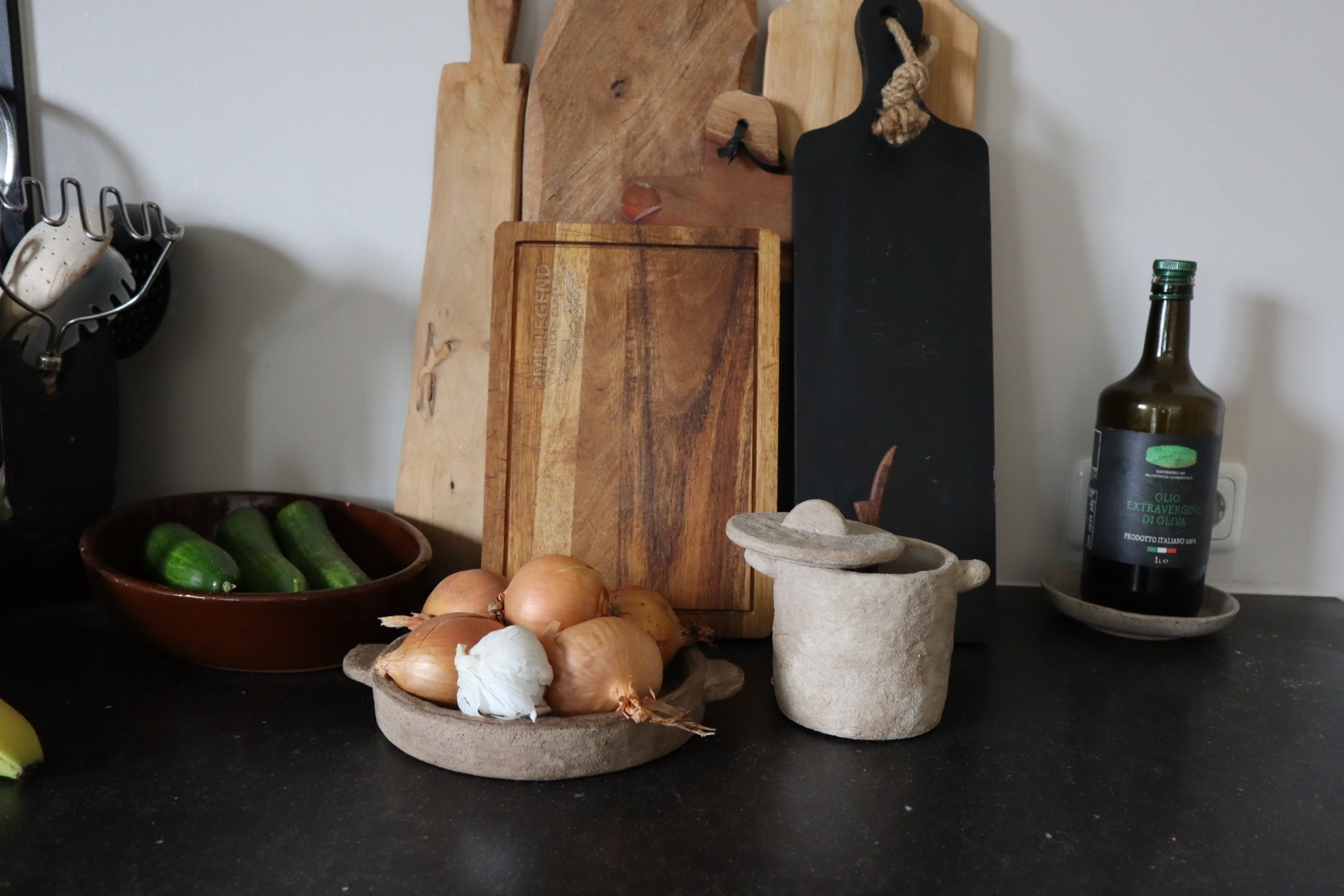 Schaal van cement met handvat