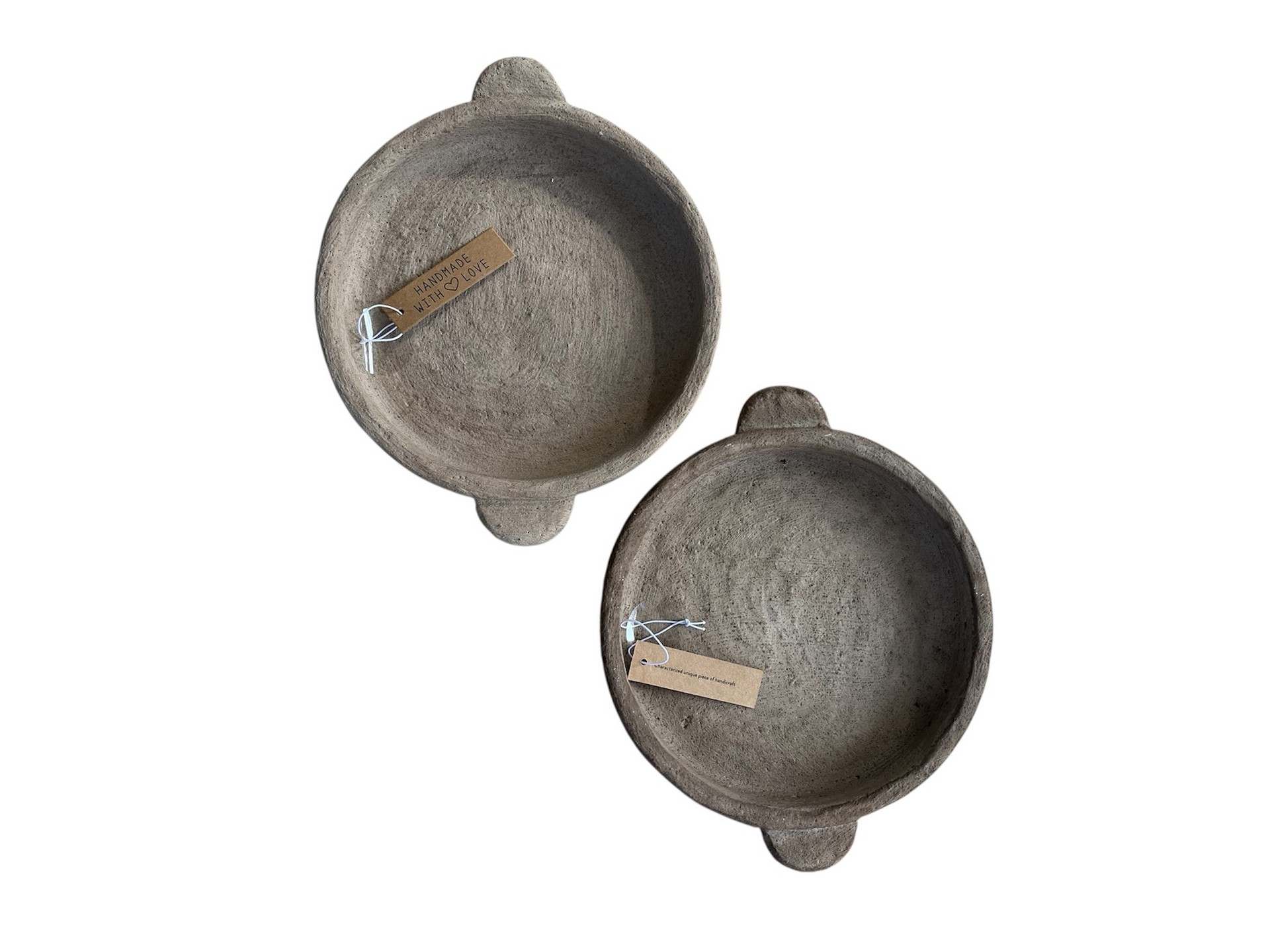 Handgemaakte cementen platte schaal, grof afgewerkt voor een stoere en natuurlijke uitstraling in een beige bruine kleur, welke kan varieren doordat het ambachtelijk gemaakt is.